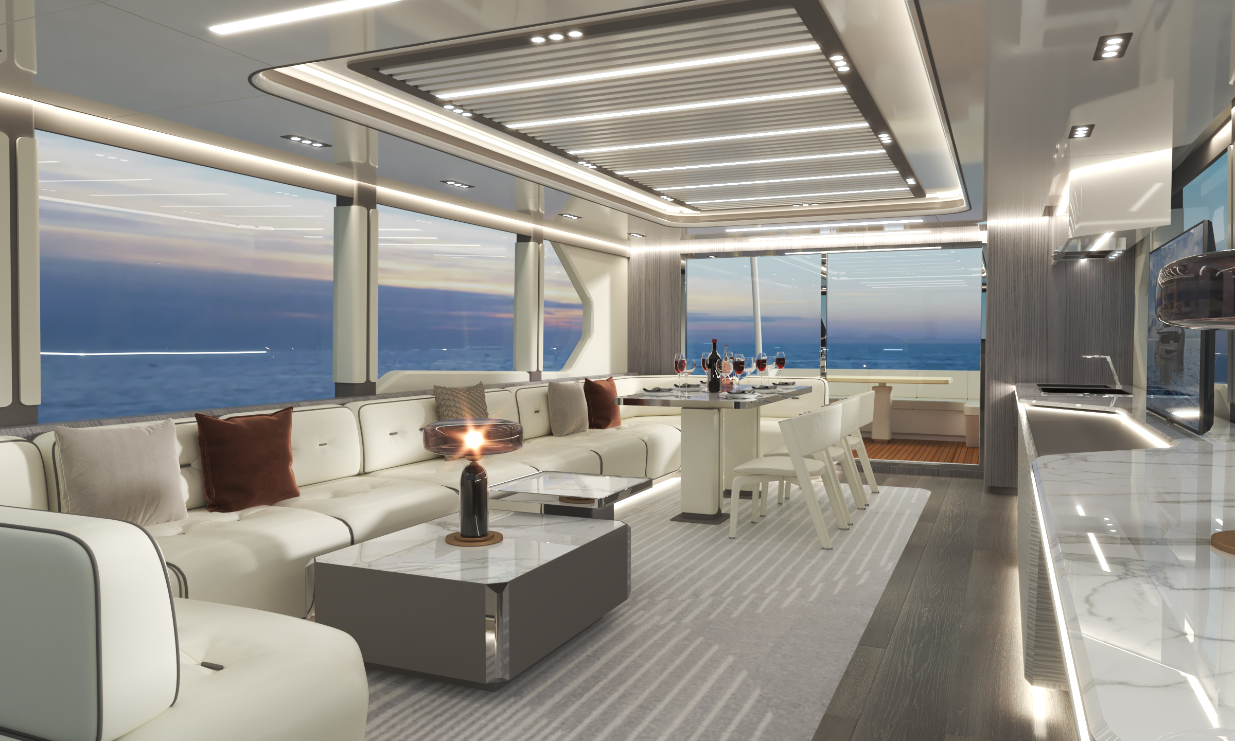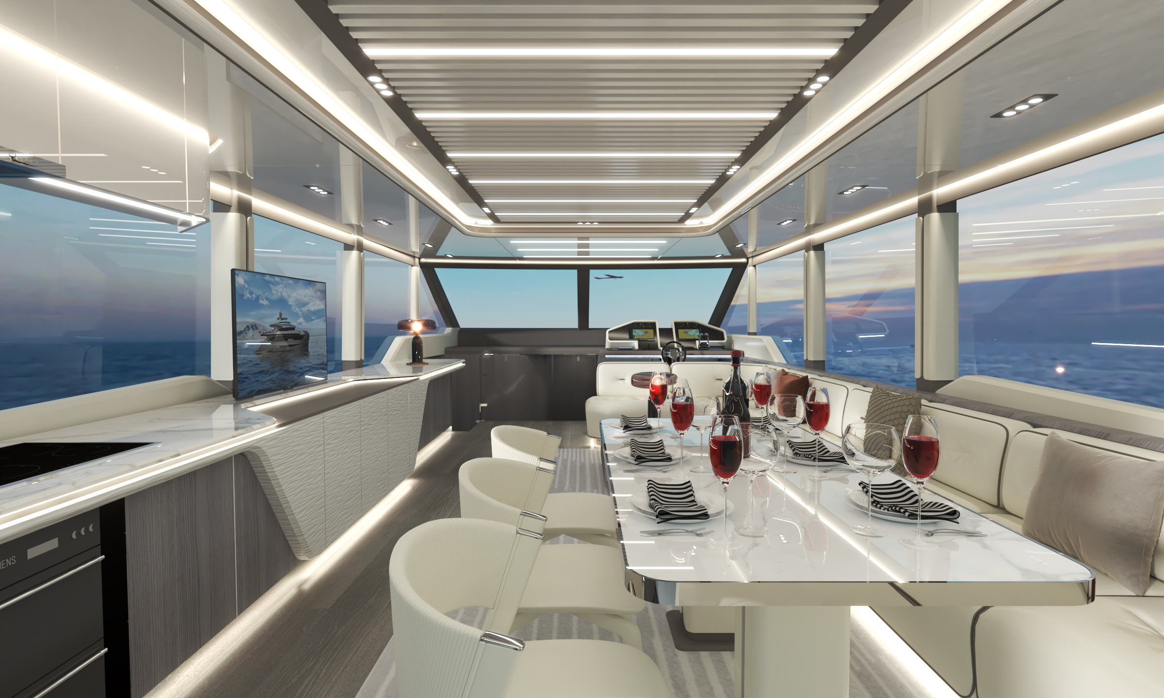 定制化豪華商務(wù)沙龍廳,空間最大化,大窗戶審美設(shè)計(jì)同時(shí)也提升了甲板和內(nèi)部整體空間的通透性。