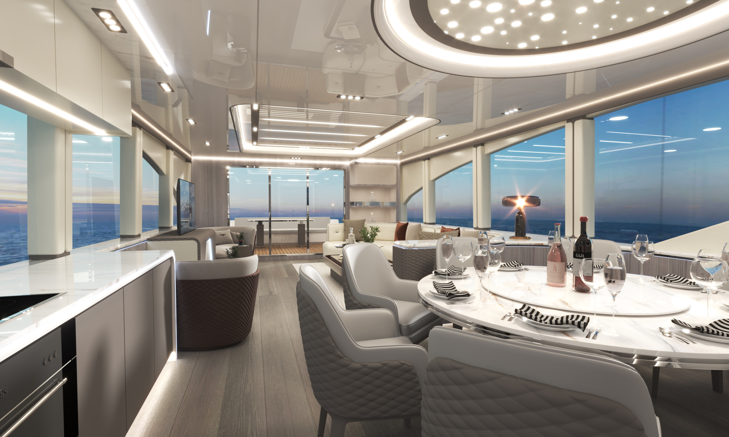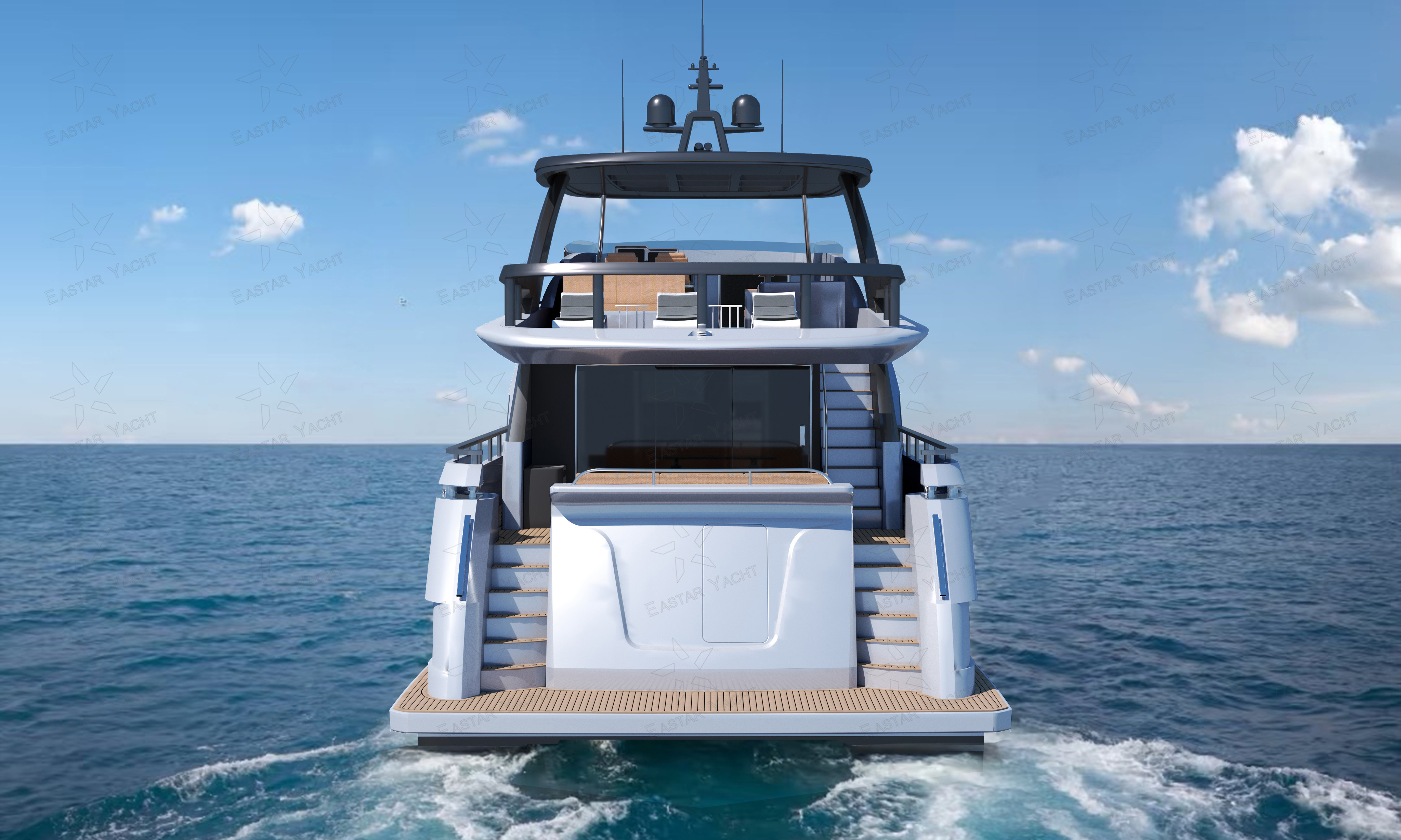 這艘游艇擁有令人驚嘆的前后甲板設(shè)計,空間寬闊得仿佛能容納整個海洋的遼闊。