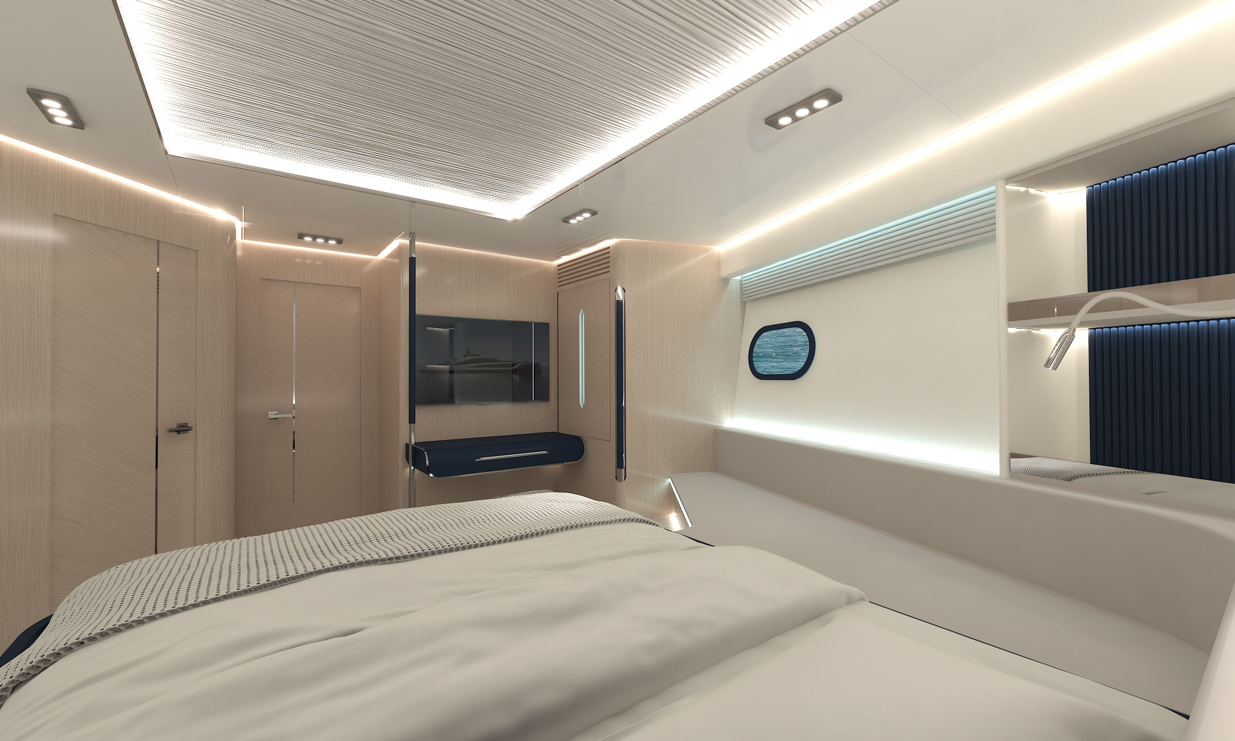定制化的豪華商務(wù)沙龍廳,奢華與舒適的氛圍彌漫每一寸空間。細膩的皮革沙發(fā)、精致的木質(zhì)裝飾板以及柔和的燈光相互映襯,營造出溫馨而高雅的環(huán)境。巨大的窗將窗外的海景盡收眼底,藍色的海洋一望無際,海浪輕輕拍打著游艇,讓人在商務(wù)交流之余,也能盡情享受大自然的美妙。