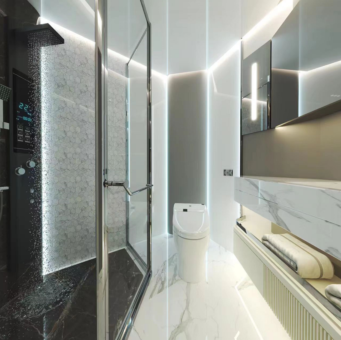 簡約大氣的臥室,軟裝設計溫馨,時尚,將奢華,高端,融入細節(jié)之中。多元素搭配,層層遞進,設計的巧思,滿足空間感的延伸。在輕柔的海浪聲中酣眠,舒適放松,夜晚的溫柔,將你擁入懷中。寬敞明亮的衛(wèi)浴間,精裝設計,完美動線,暢飲暢聊后清爽淋浴,然后酣然入睡。