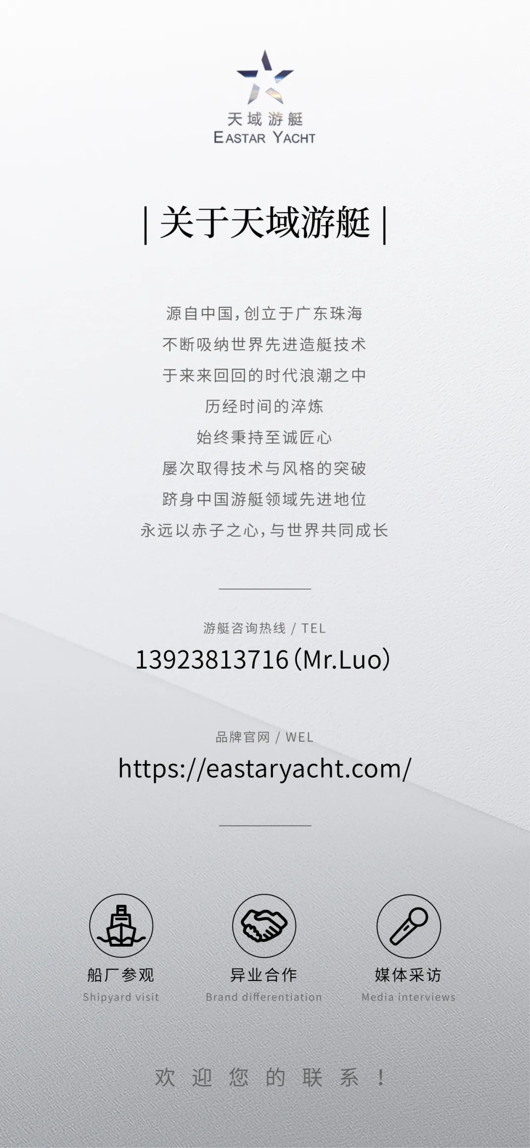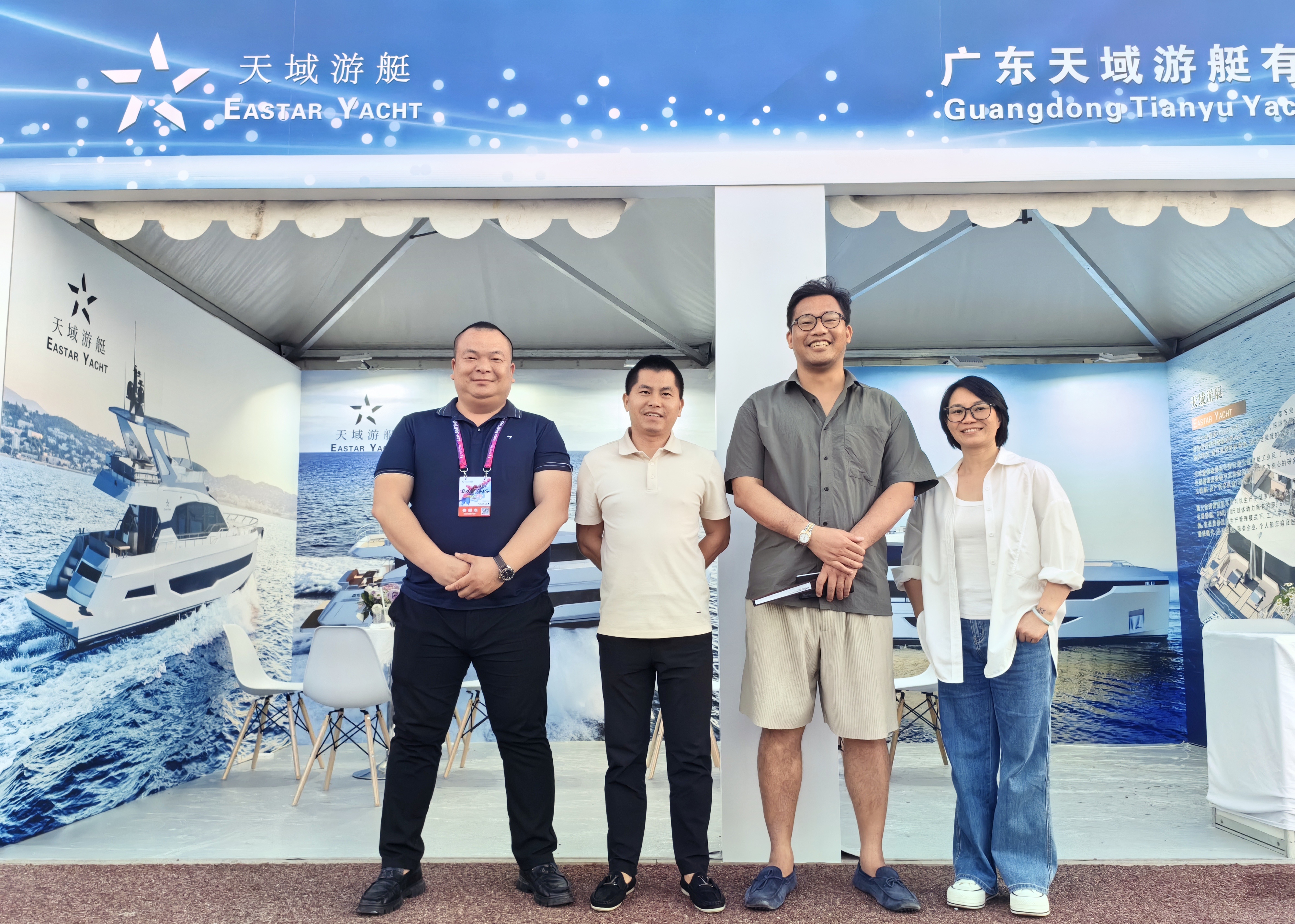 在接待外商的過程中,天域游艇更是展現(xiàn)出了獨特的魅力與實力。外商們對TY560 表現(xiàn)出了濃厚的興趣,圍繞著它的技術參數(shù)、建造工藝以及定制化服務等方面展開了深入的咨詢與探討。外商們對其在不同海域的適應性、航行成本以及配套設施等問題表現(xiàn)出了強烈的好奇心,天域的專業(yè)團隊一一給予了詳細且專業(yè)的解答,讓大家對這款雙體游艇有了更為深入的了解。他們對中國能夠制造出如此高品質的動力艇感到驚嘆與欽佩,這也充分證明了天域游艇在國際市場上已經(jīng)具備了強大的競爭力,正逐步走向世界。
