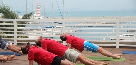 夏爾與船員一起在三亞練習(xí)瑜伽