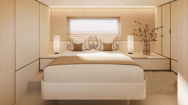 同時(shí),游艇使用了可持續(xù)船上材料,包括使用軟木代替柚木、艙壁和甲板的生態(tài)凝膠涂層、回收織物和 FSC(森林管理委員會(huì))認(rèn)證的木材。Matteo Thun 強(qiáng)調(diào)了材料的選擇如何專門針對(duì)該系列的輕量級(jí)和可負(fù)擔(dān)的功能,同時(shí)仍然保持“經(jīng)濟(jì)之美”。